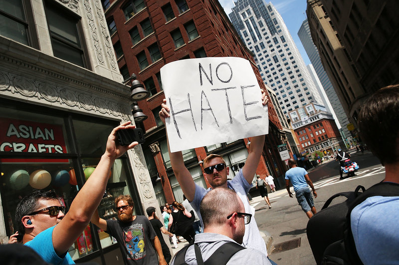 Crimen de odio y discurso de odio no son lo mismo. Los mensajes de contenido racista son delito en muchos países, pero no en EEUU donde casi toda expresión está protegida bajo la Primera Enmienda de la Contitución. Un delito o crimen de odio, señala ADL, es un acto criminal en el que el agresor elije a su víctima por su raza, religión, origen nacional, orientación sexual, discapacidad o género, todas categorías protegidas bajo ley federal.