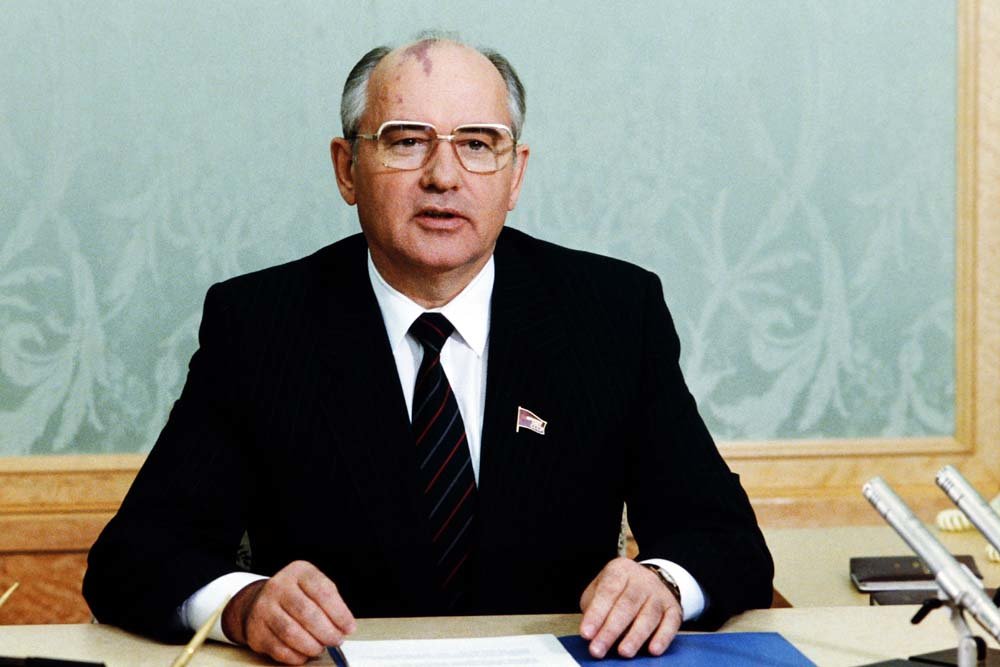 Mijail Gorbachov, secretario general del Partido Comunista de la Unión Soviética. A la izquierda, representado por el actor sueco David Denciuk en la serie de HBO; a la derecha, el líder soviético real, en una fotografía tomada a pocos días de la explosión en abril de 1986.