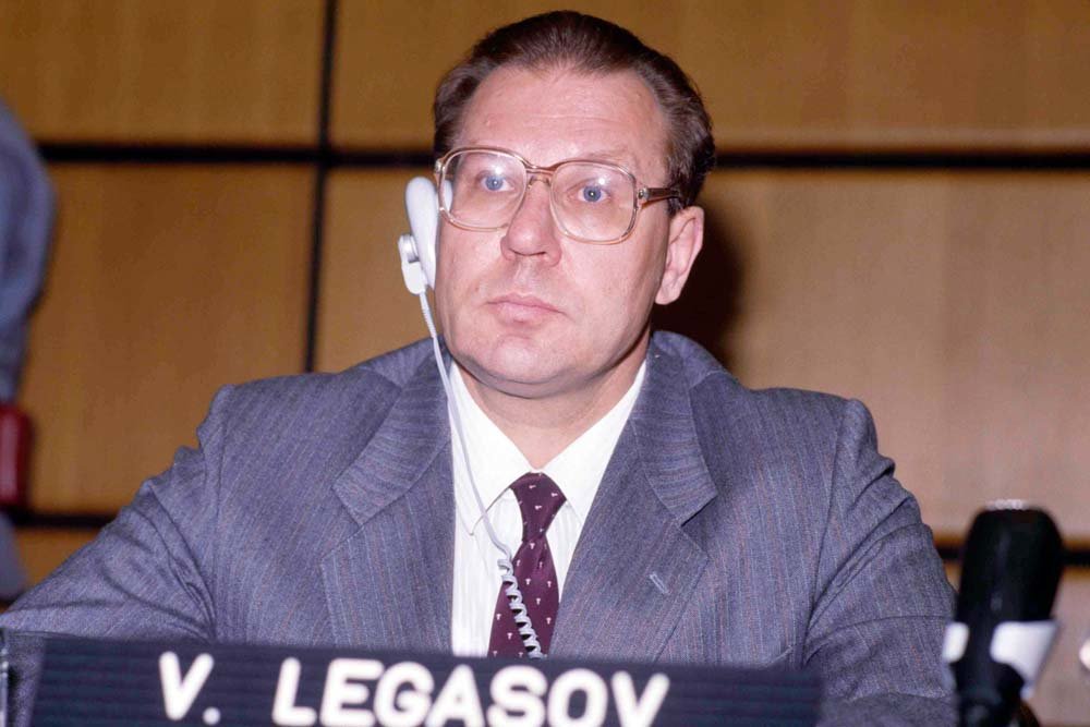En la foto de la izquierda se ve al actor británico Jared Harris, representando a Valery Legasov, el científico ruso que lideró la investigación sobre la catástrofe nuclear. A la derecha, el personaje real en una conferencia sobre Chernóbil en Austria, en agosto de 1986.