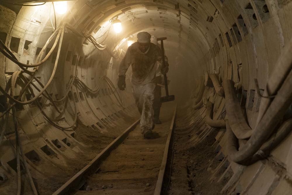 Obreros en los túneles de la planta nuclear momentos después de la explosión. A la izquierda, una imagen de la serie de HBO; a la derecha, un fotograma tomado de un video de la época.