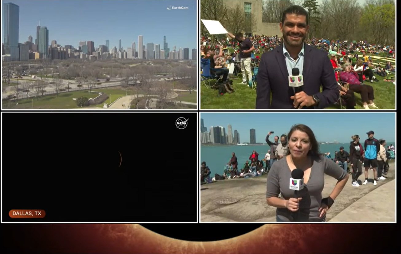 Chicago es una de las zonas donde se vivió el eclipse solar, con un 94% de visibilidad. Estuvimos con cobertura en equipo, siguiento el movimiento del sol, hasta que llegó a su punto máximo.