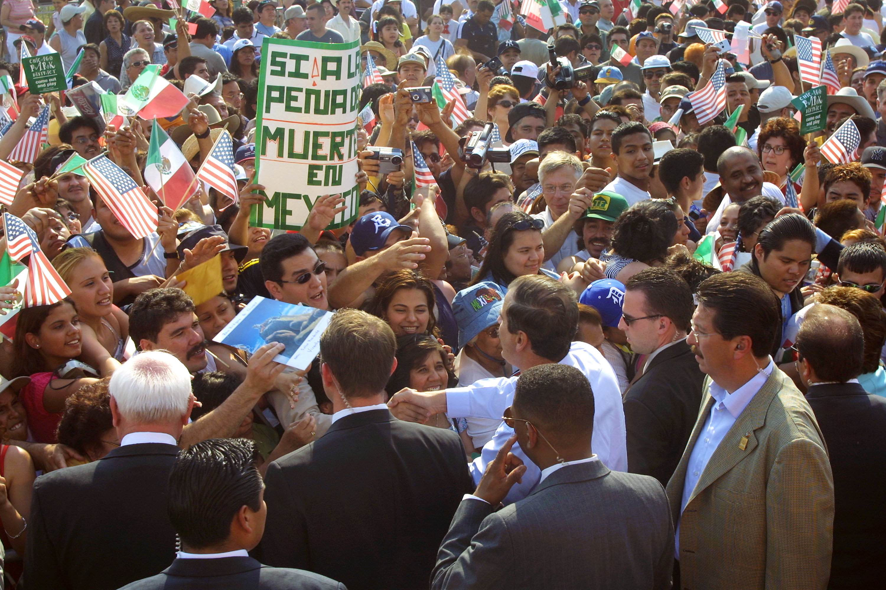 Vicente Fox, presidente de México, visita Chicago y acude a La Villita, que se ha convertido en un vecindario donde predomina la cultura mexicana.