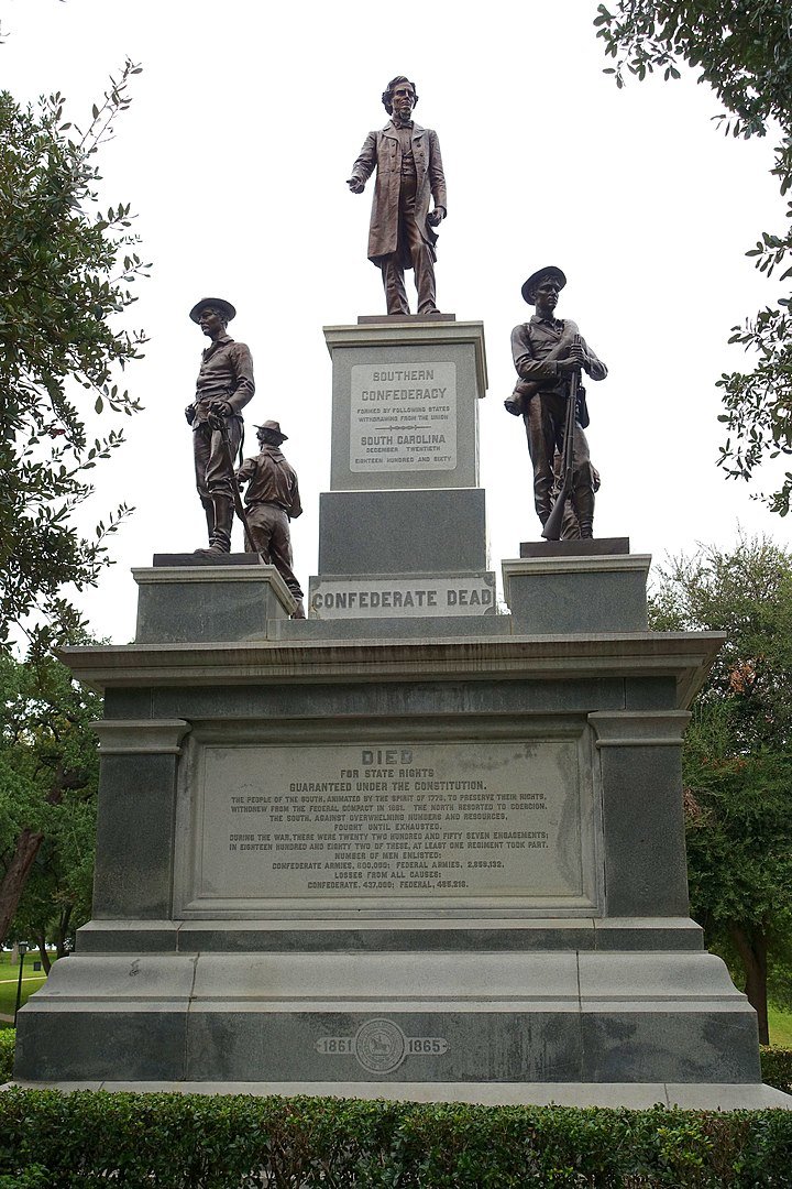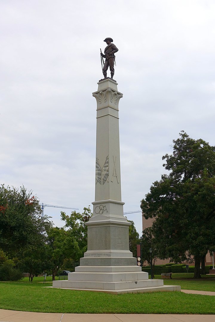 Este monumento, en los alrededores del Capitolio de Texas, rinde homenaje a los soldados confederados caídos durante la Guerra Civil y, según la leyenda grabada, asegura que "murieron defendiendo los derechos del estado [Texas] garantizados por la Constitución". La secesión de los estados del sur fue un detonante de la Guerra Civil de Estados Unidos.