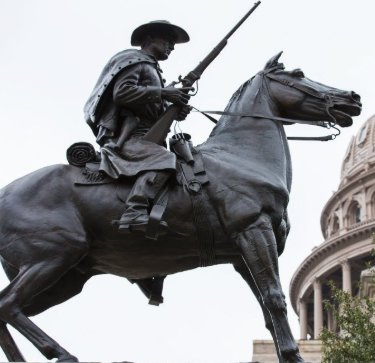 La estatua, situada en los alrededores del Congreso de Texas, rinde homenaje a la brigada de voluntarios texanos, liderados por Benjamin Terry, que se unieron al Ejército Confederado.