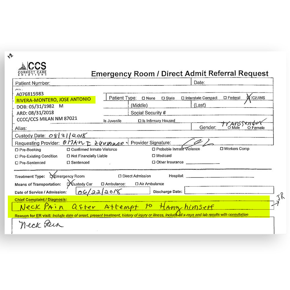Rivera was finally assigned to the ICE detention center in Cibola County, New Mexico, on August 29, 2017. She was held in the general population for only two months, before she began to spend spells in "the hole", also knonw as she SHU (Special Housing Unit) without any apparent justification and "with false accusations" of violating the rules, according to Rivera. She says it was due to retaliation against multiple complaints she made about her treatment and "violations of our rights." Finally, on May 24, 2018 she was placed in segregation for her own "protection", she said. Although in Cibola there is a unit for the transgender and LGBT population, the authorities refused to let her be with them. ICE says officers offered Rivera the opportunity to leave the SHU and she refused. "That's because they wanted to take me to the male population and deny me my rights to be with transgender people." She tried to commit suicide on June 22, 2018 and was transferred to the hospital, but on the way back she was placed in solitary confinement. She left solitary in Cibola on August 8, 2018. But that wasn't the end of his solitary confinement.