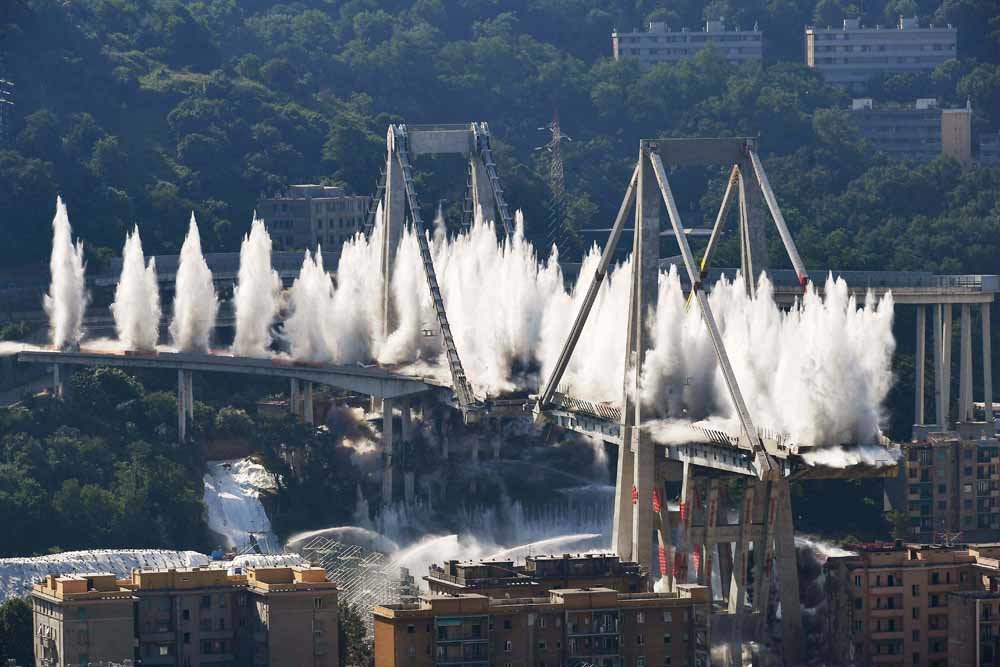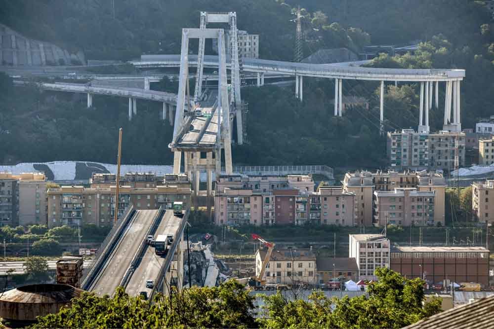 El puente Morandi colapsó el 14 de agosto de 2018 mientras autos, camiones y buses lo recorrían. Dejó a 43 personas muertas y obligó al desalojo de casi 600 personas que vivían en la cercanía de esta enorme estructura.