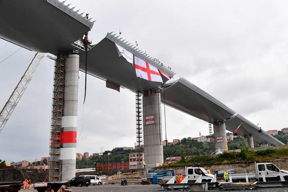Para Renzo Piano, arquitecto del puente, este deberá durar mil años. Frente al hormigón de la estructura anterior, construida en los años sesenta, el material principal del nuevo es el acero.