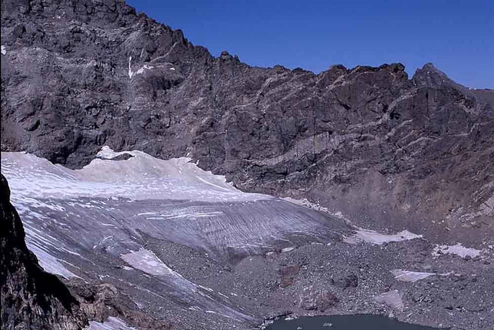 Glaciar Arapaho, Colorado. El glaciar Arapaho se ha contraído dramáticamente desde que fue fotografiado en 1898. Las mediciones recogidas desde 1960 sugieren que el glaciar ha adelgazado por lo menos 40 metros desde entonces.